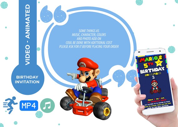 Mario Kart Video Invitiation Video Birthday Invitationmario Etsy
